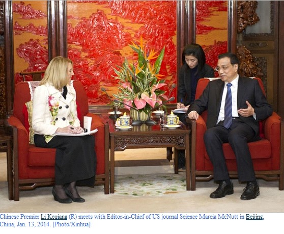 Li made the remarks in a meeting with the visiting editor-in-chief of Science magazine, Marcia McNutt.