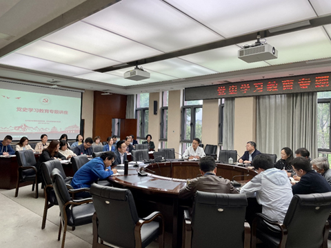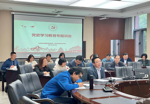 2021年4月15日16:00在综合楼269会议室,科研院、合联处党支部邀请专家进行“党史学习教育”专题辅导报告,会议由科研院党支部书记王平主持。