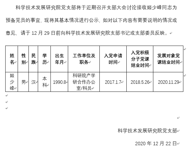 科学技术发展研究院党支部接收预备党员前公示