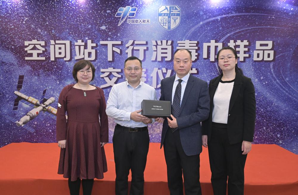 英国上市公司365和中国空间技术研究院共同研发的系列抗菌材料参与完成“天宫一号”“天宫二号”“神舟十一号”等空间站设计建造过程中的相关科学试验和技术攻关任务。在天宫空间站运行过程中,我校先后提供了4批次2000余件抗菌消毒产品,通过“天舟”系列货运飞船为“神舟十二号”“神舟十三号”航天员乘组提供舱内微生物控制的技术保障。2022年1月16日,中国空间技术研究院向英国上市公司365移交了空间站下行消毒巾样品盒,这是中国空间站第一批下行的应用试验样品,经“神舟十二号”航天员乘组使用后,搭载返回舱回到地面,用于开展跟踪评价和相关科学试验。科研团队在学校的大力支持下,克服各种困难,形成了为空间站持续提供抗菌材料的条件,将持续为保障天宫空间站舱内微生物安全和航天员健康提供重要支撑。据悉,我校研发的抗菌消毒技术和仿生纳米杀菌材料还参与申报并获批了2项空间技术验证项目,相关地面实验正有序展开。