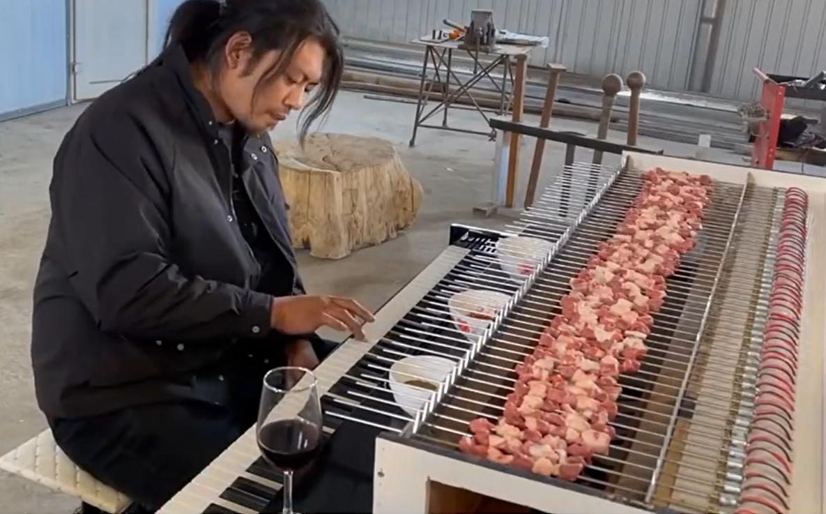 (网络红人手工耿发明出可以边烤肉边弹钢琴的机器)